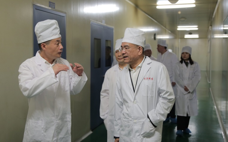 在基地总经理杜利辉的陪同下,依次参观了厂区、库房、前处理车间、提取车间、固体制剂车间,各区域负责人作了详细的讲解,董事长对现场情况进行了询问及沟通。