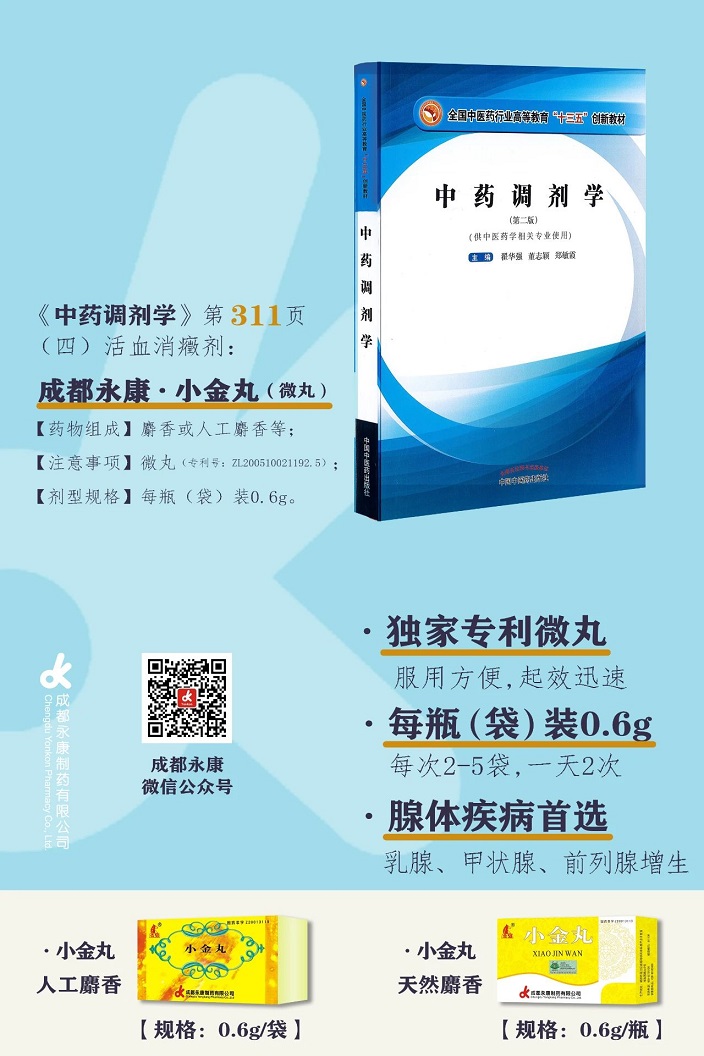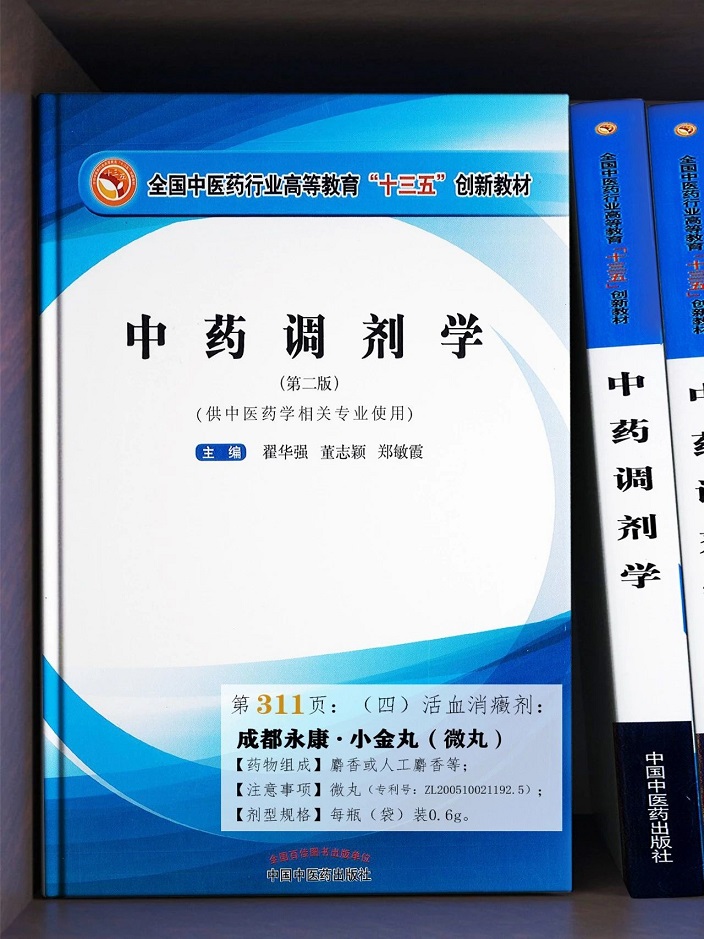 成都永康小金丸(微丸)入选“全国中医药行业高等教育‘十三五’创新教材”