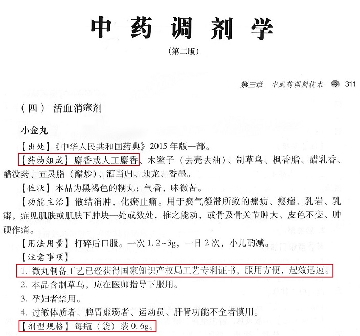 成都永康小金丸(微丸)入选“全国中医药行业高等教育‘十三五’创新教材”——《中药调剂学》。